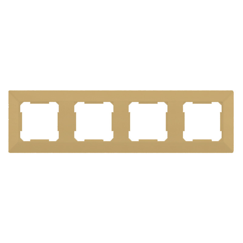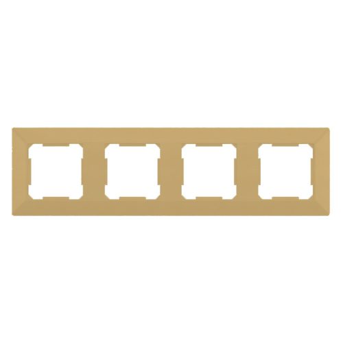 Elegáns, arany színű ELDLUX ELDGROUND négyes műanyag keret villanykapcsolókhoz és konnektorokhoz. Modern, letisztult megjelenése harmonikusan illeszkedik a legtöbb enteriőrbe, és ideális választás ELDLUX szerelvények esztétikus csoportosításához.
