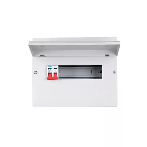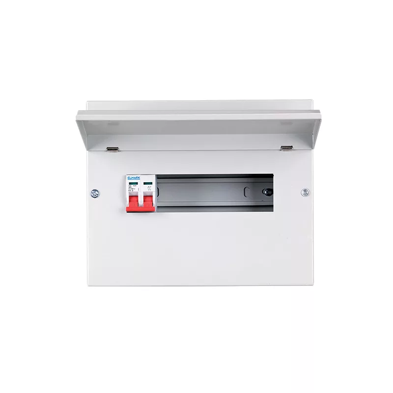 Masszív, falra szerelhető fém elosztó szekrény 22 modulos kapacitással, beépített ISS 2P/100A főkapcsolóval. Ideális lakások, kisebb üzlethelyiségek, műhelyek biztonságos áramelosztásához, átlátható, rendezett és bővíthető kialakítással.